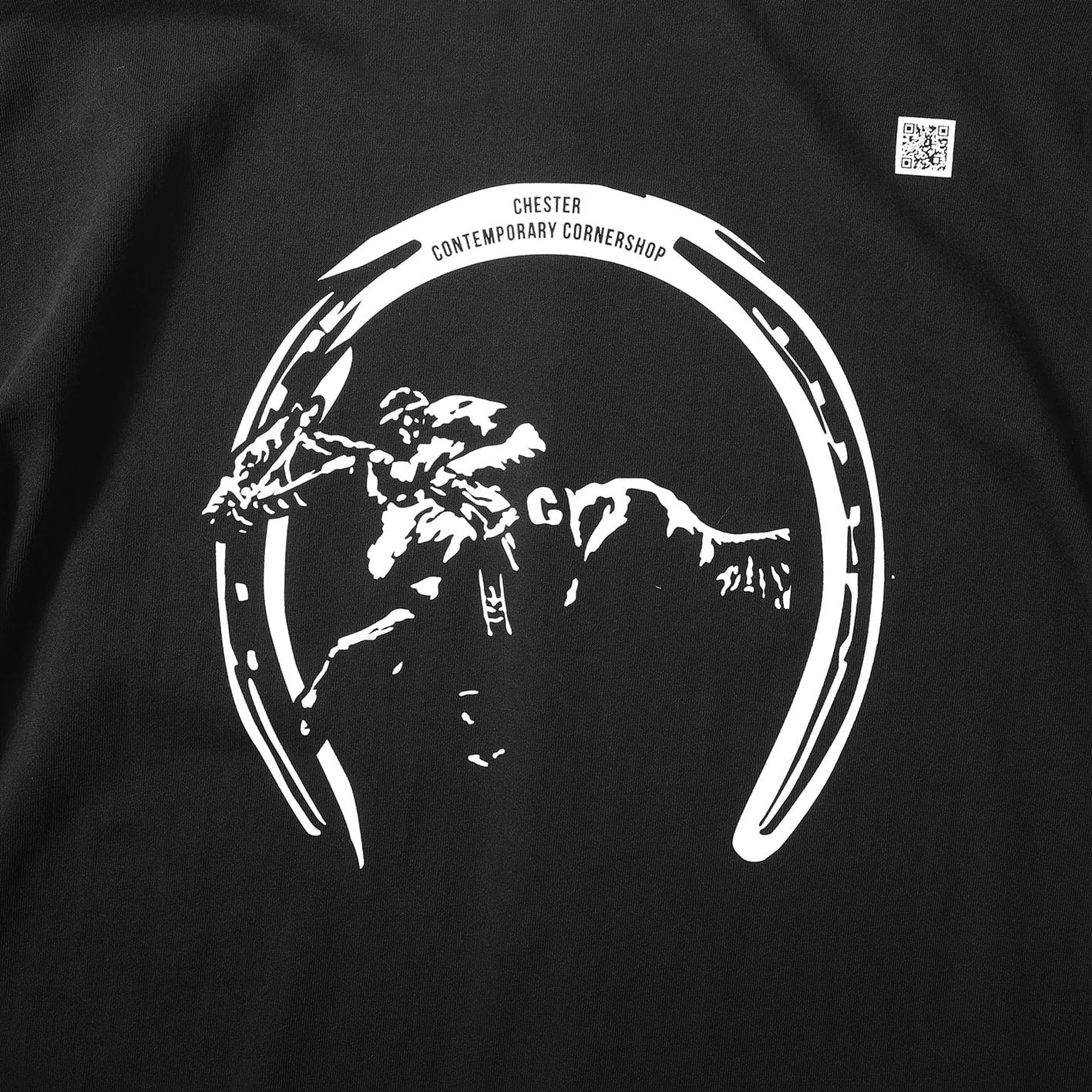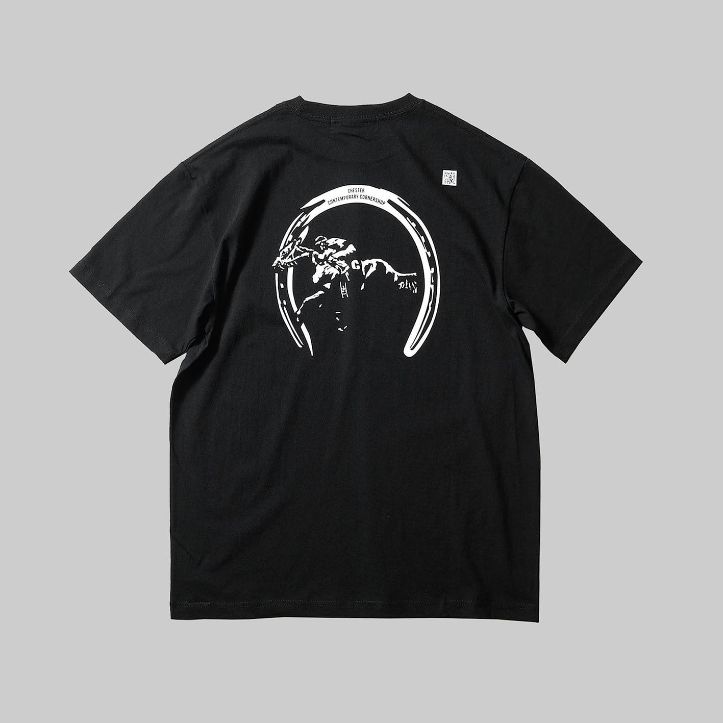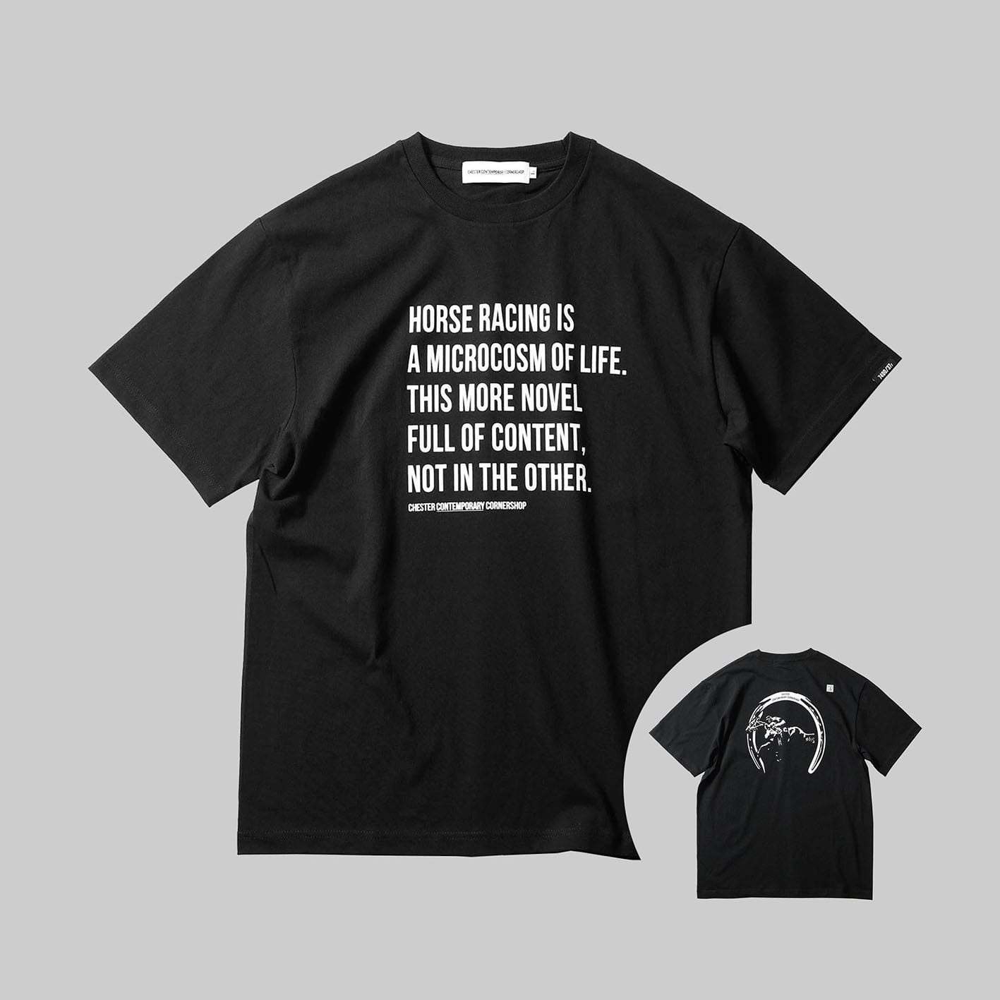 かの名言がさりげなく配されたフロント、幸運のシンボルとしても知られている「蹄鉄」とゲートを出走した瞬間のサラブレッドがモノトーンで表現されたアーバン競馬デザイン。