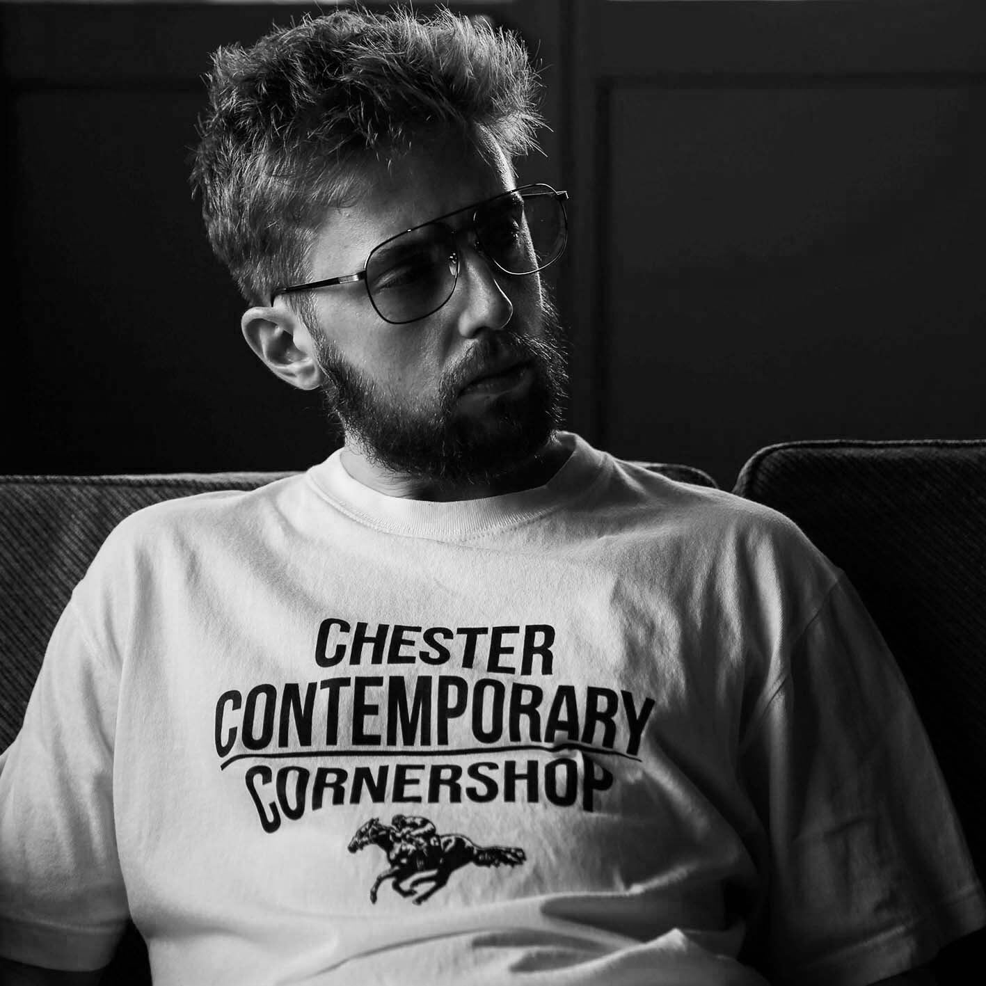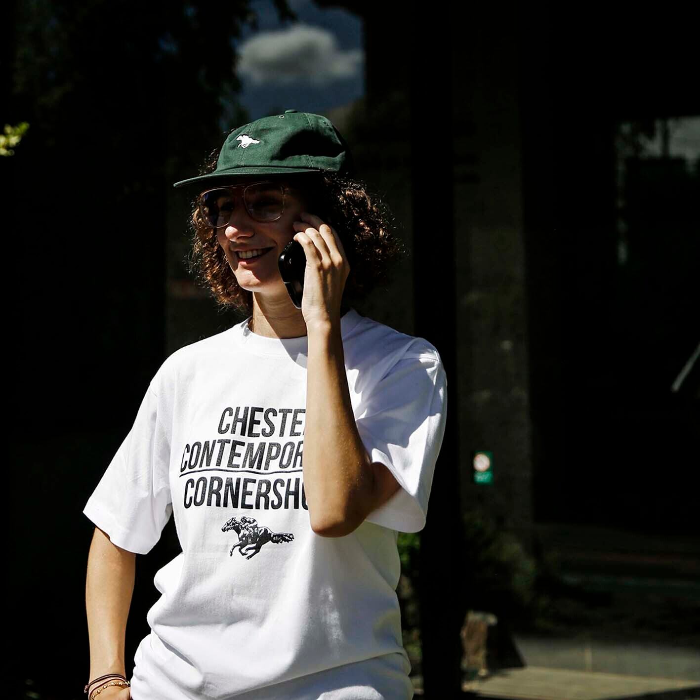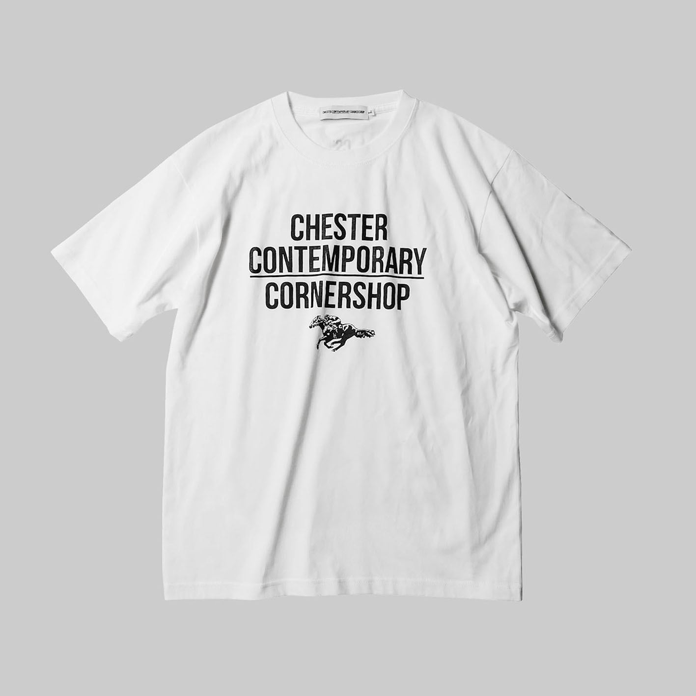 CHESTER CONTEMPORARY CORNERSHOPベーシックロゴがプリントされたオーセンティックなデザイン。伝統と疾走感を感じる一枚。